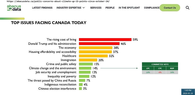 Not withstanding so-called ‘Trump derangement syndrome,’ that has some life-long ‘Conservatives’ rationalizing that Mr. Carney might be working for Canadians after all, most Canadian’s realize there is something else going on, and that ‘climate' alarmism is being used as a tool to extract ‘value’ (in the form of tax dollars and fees) from the unsuspecting and uninformed.